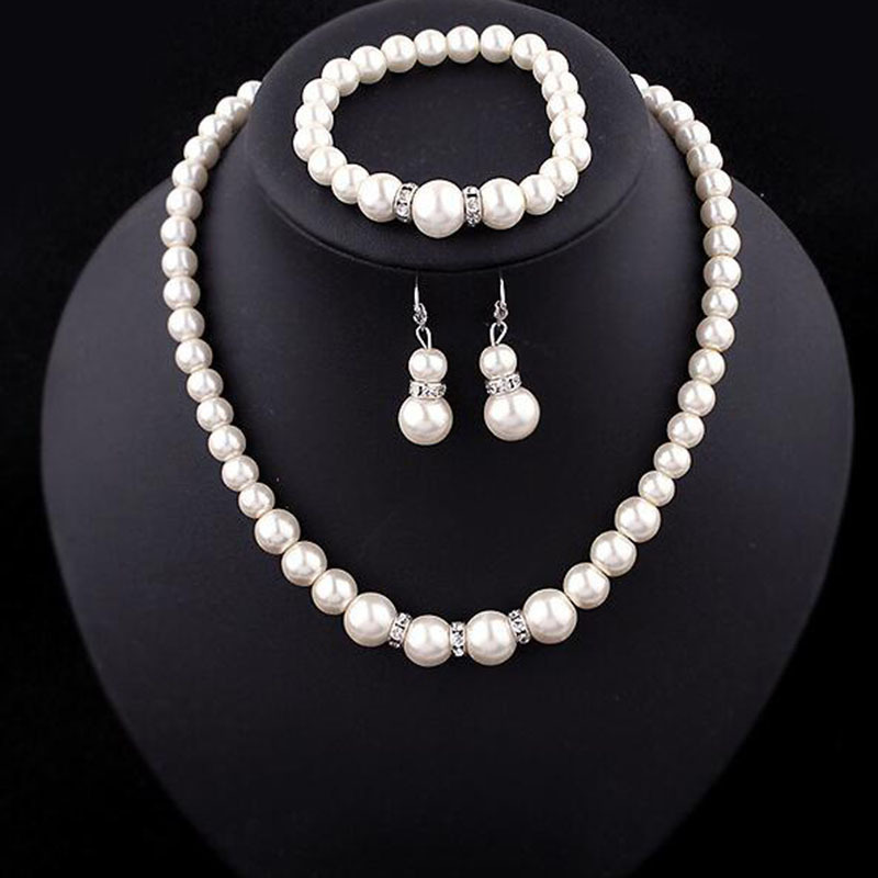 Pearl Necklace Earrings Bracelet Set Three-piece Set European and American Cross-border Personality Pearl Collarbone Necklace Jewelry Set
