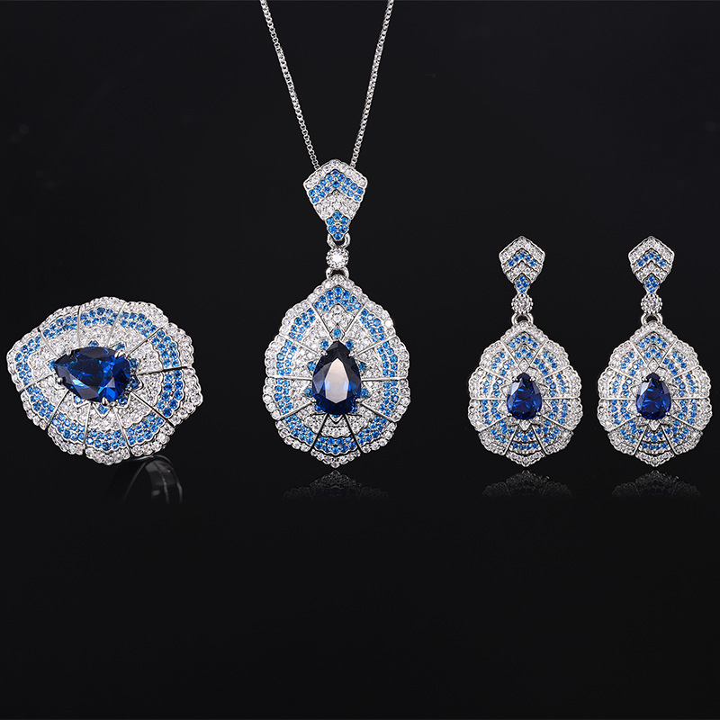 Cross-border Jewelry suit Necklace Pendant Sapphire Earrings Baroque Vintage Earrings European and American Earrings Ring Wholesale