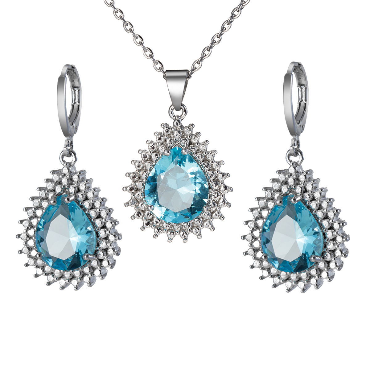 Europe and the United States factory direct new water drop sea blue topaz earring necklace earrings earrings tourist souvenirs