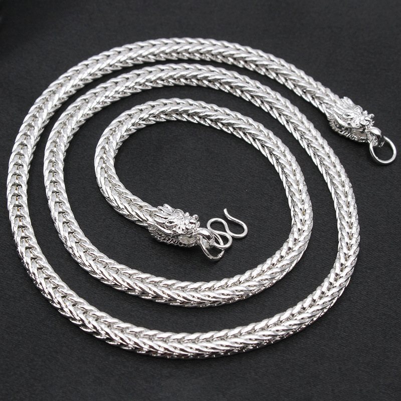 Live Broadcast Men's Silver-Plated Jewelry Set 6N Imitation Silver Dragon Head Fox Tail Necklace Bracelet 55cm Southeast Asian Export Jewelry