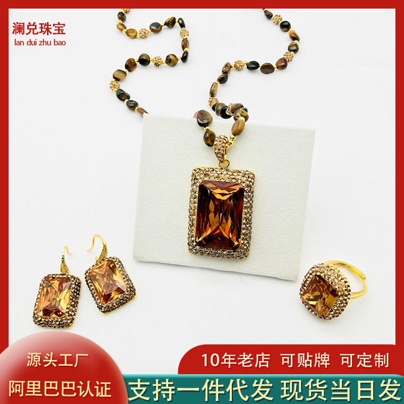 Light-Sensitive Color-Changing Sudanese Stone Set Pendant Necklace Ring Earrings Tiger Eye Stone Chain Women's Retro Fashion Elegant