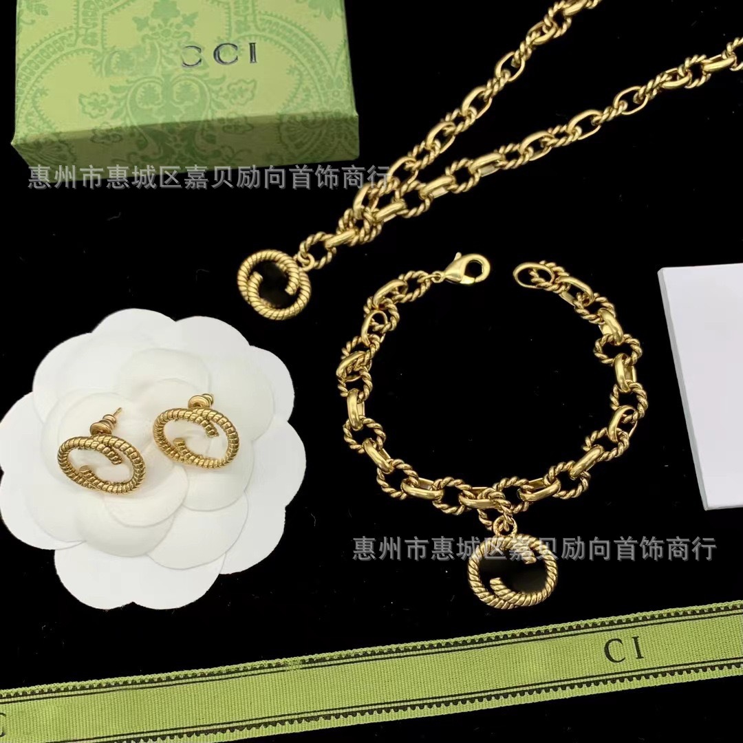 Gujia Accessible Luxury, Simple and High-End Niche Design Letters, Fashionable and Versatile Brass Material 2024 Jewelry Set