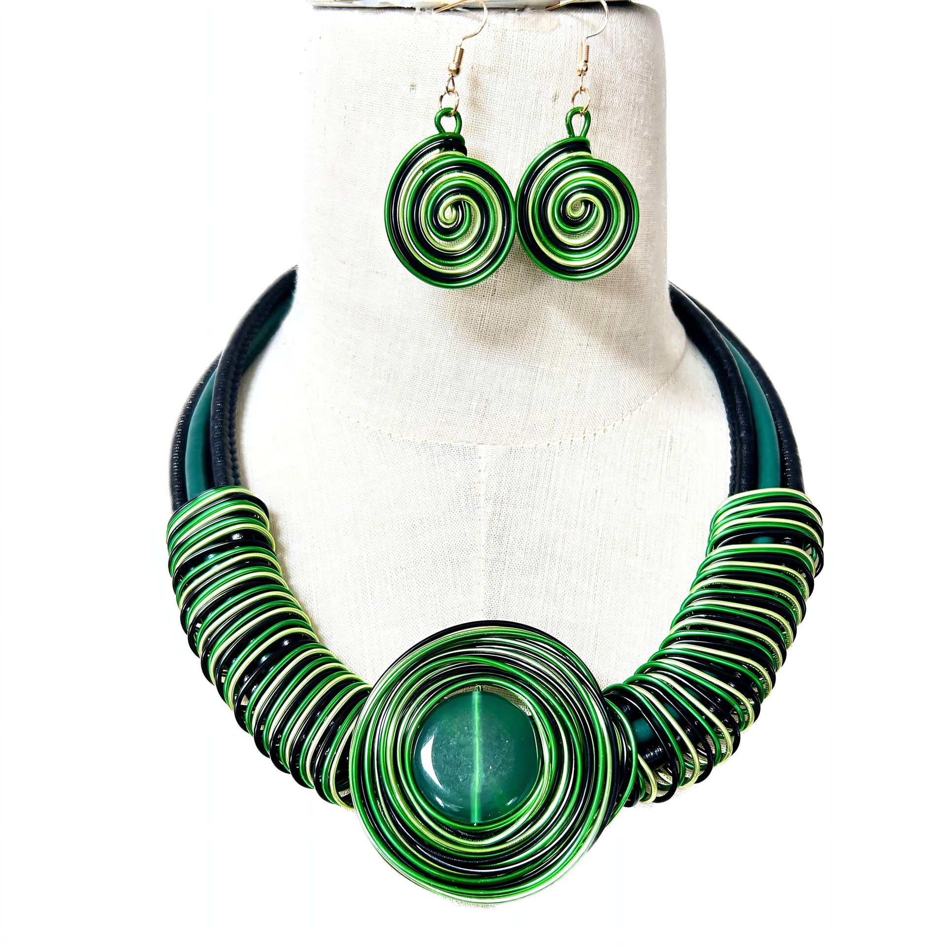 European and American exaggerated necklace collar short clavicle chain earrings combination SHEIN aluminum wire gem jewelry necklace