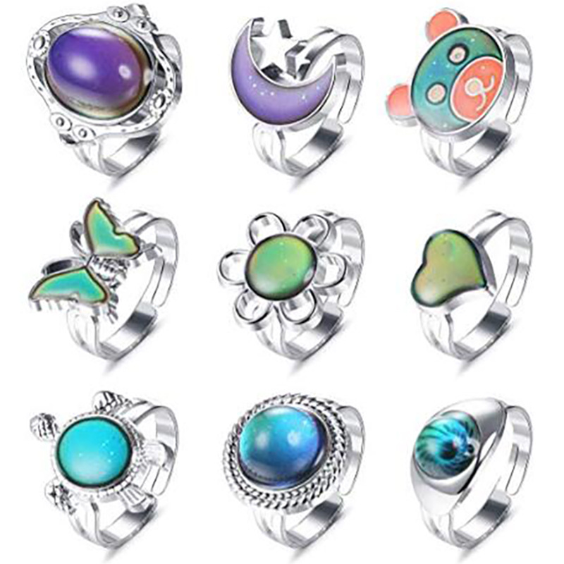 Personalized fashion and trendy temperature change color lighting fingertip color change magic color ring color change jewelry suit