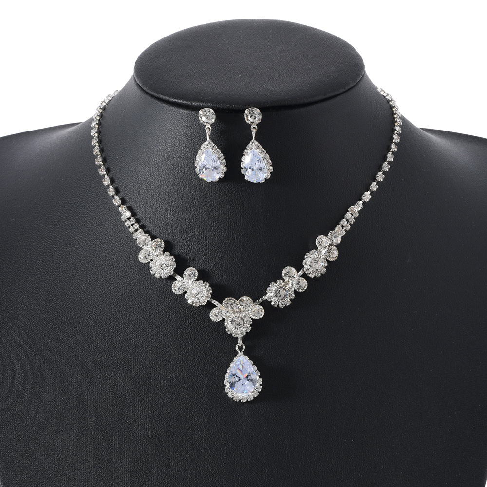 European and American Fashion Jewelry Set Simple Drop Crystal Gem Pendant Necklace Earrings Earrings Set Women's Jewelry