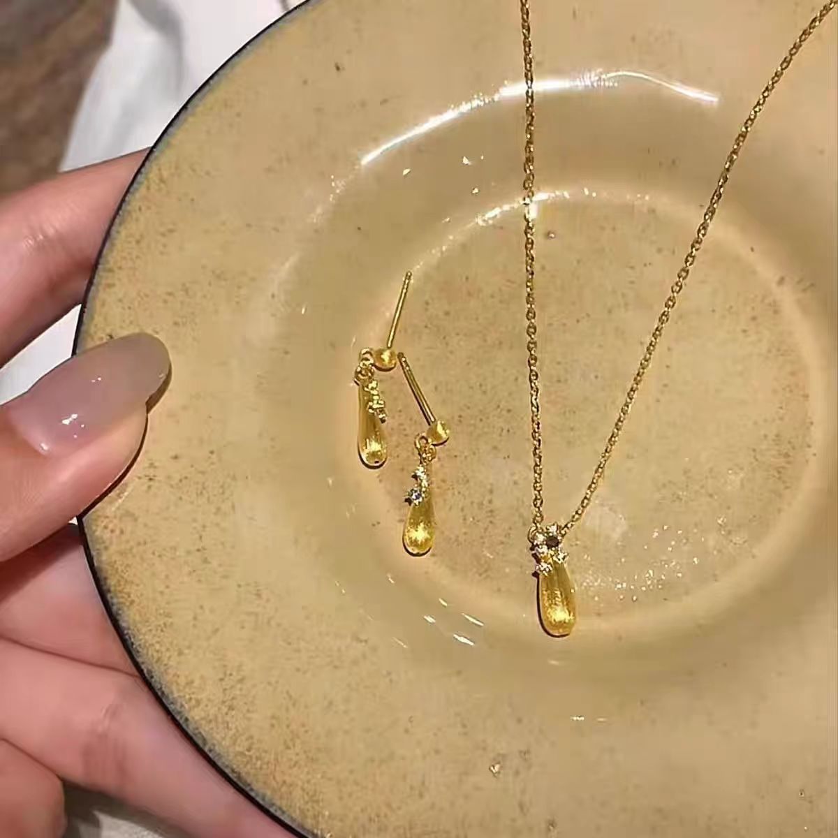 Little Red Riding Book Seiko Light Luxury Design Brushed Water Drop Pendant Earrings Niche High-grade Color-free Water Drop Necklace