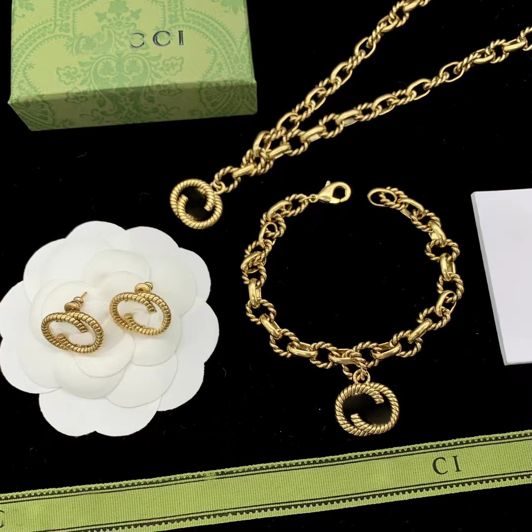 Gujia Accessible Luxury Simple High-end Niche Design Letters Fashion Versatile Brass Material 2024 Jewelry Set
