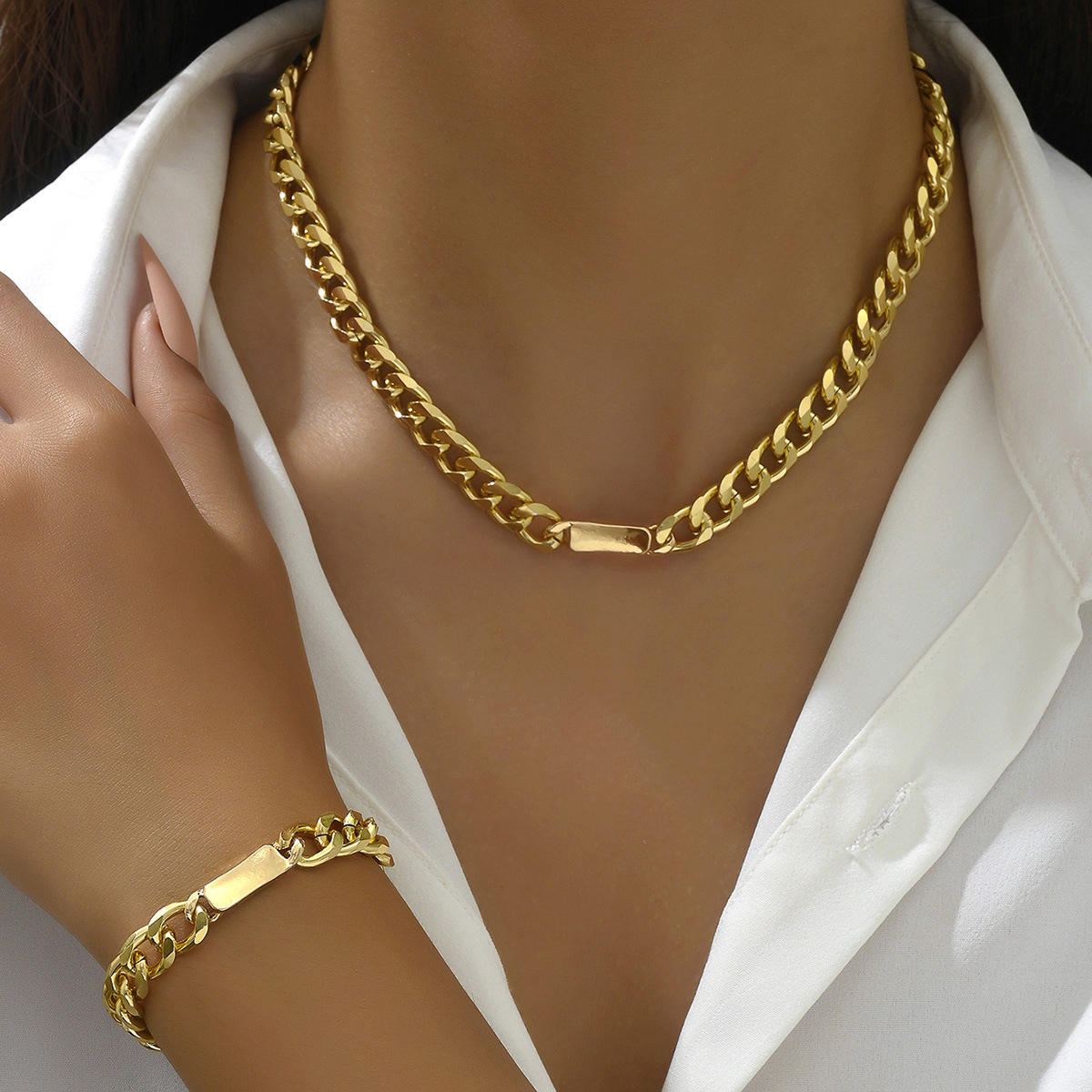 European and American Cross-border Rough Chain Alloy Bracelet Women's Trendy Internet Popular Ins Hip-hop Niche Cold Style Clavicle Chain Accessories