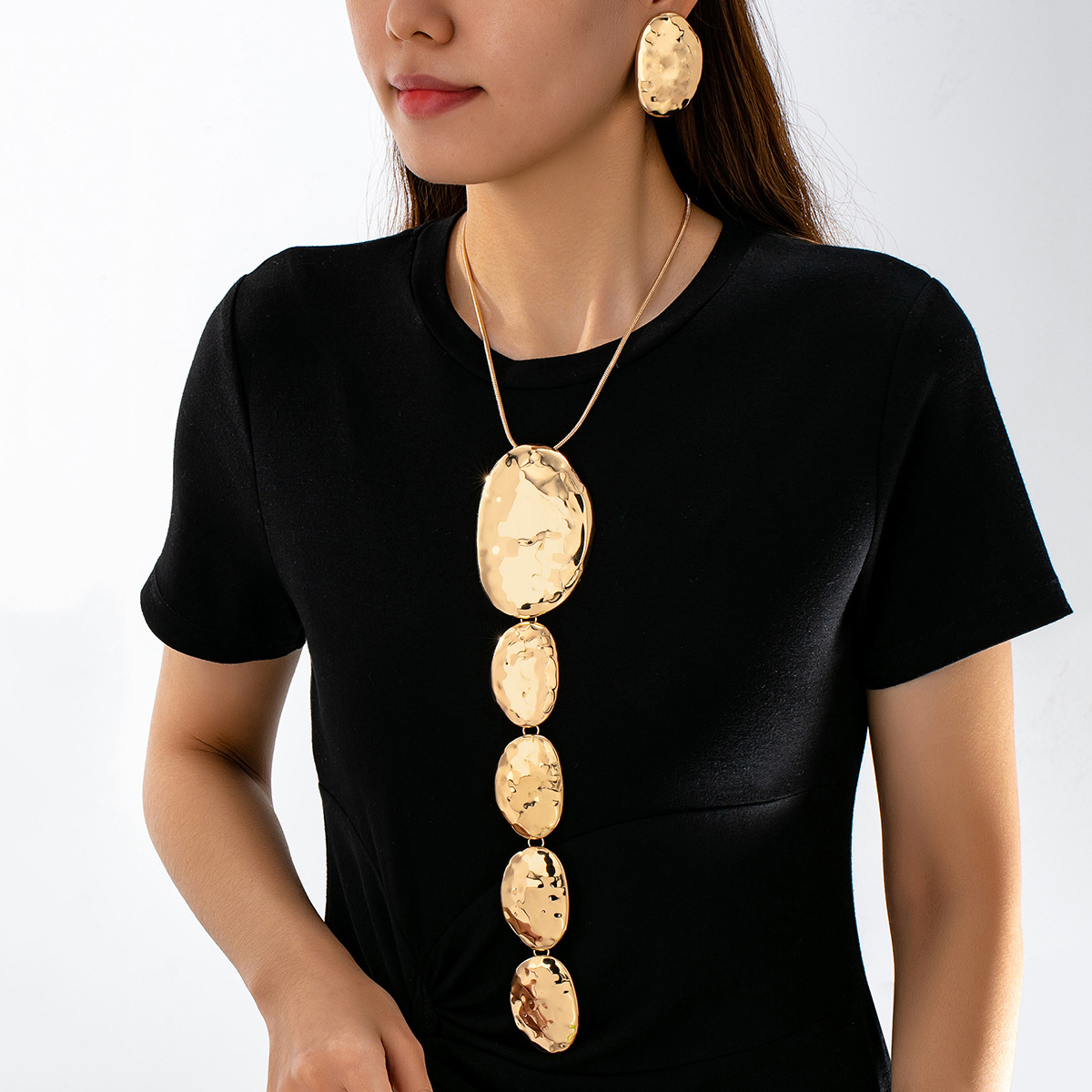 Cross-Border Xiyin New Style Exaggerated Versatile Gold Irregular Geometric Pendant Long Necklace and Earrings Set for Women