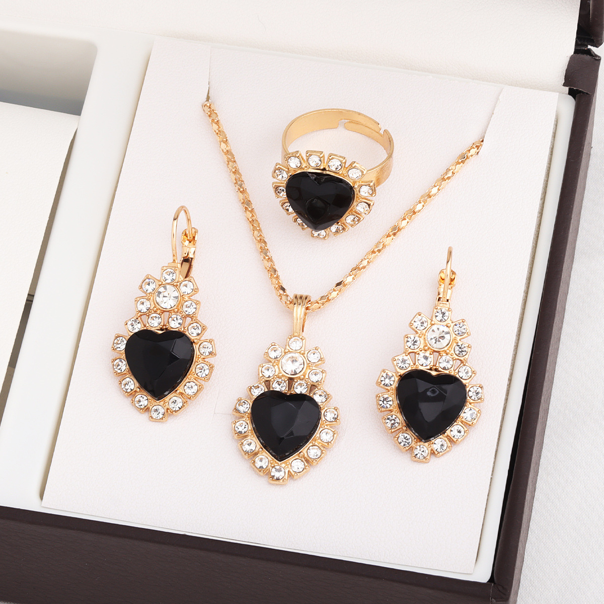 European and American Cross-Border Jewelry Set, Heart-Shaped Inlaid Diamond Pendant Necklace, Ring, Earrings, Jewelry Three-Piece Set