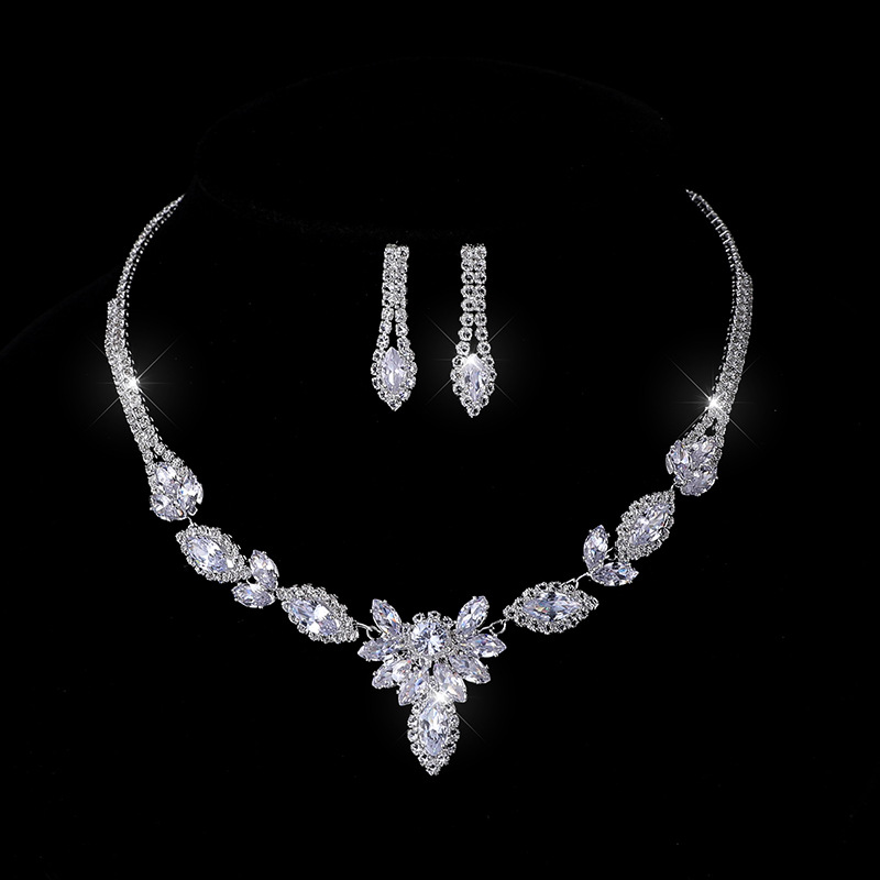 Amazon's New Bridal Full Diamond Necklace Set Cross-Border Banquet Dress Zircon Crystal Necklace Earrings Set for Women