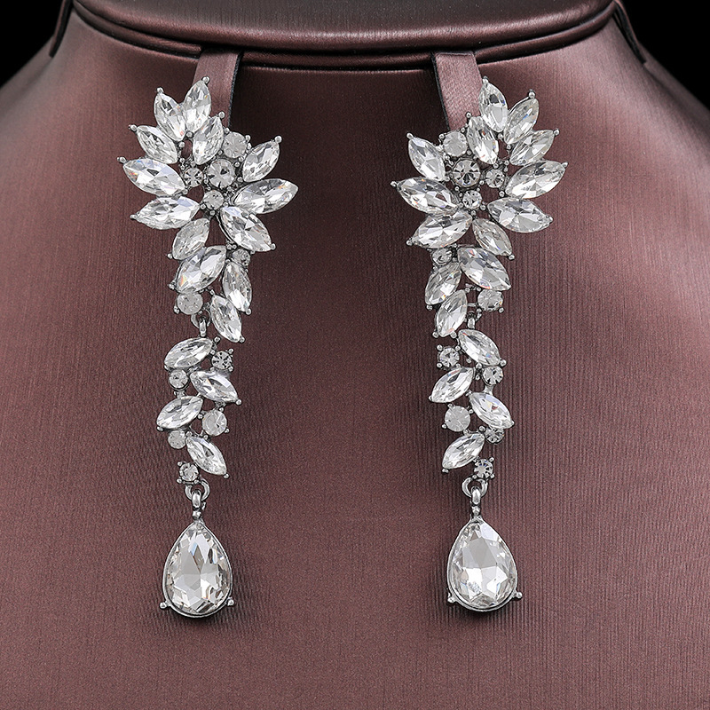 Cross-Border Hot-Selling Water Drop Dangle Earrings Bridal Wedding Versatile Crystal Earrings New Sexy European and American Fashion Earrings