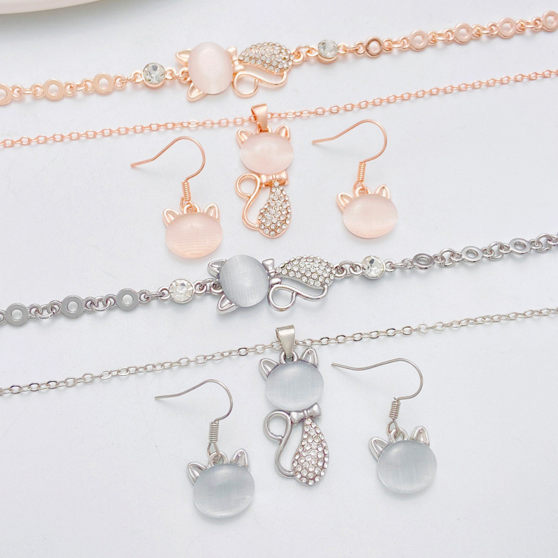 Cross-Border Fashion Cat's Eye Cat Earrings Necklace Bracelet Set Women's Light Luxury Jewelry Combination European and American Jewelry