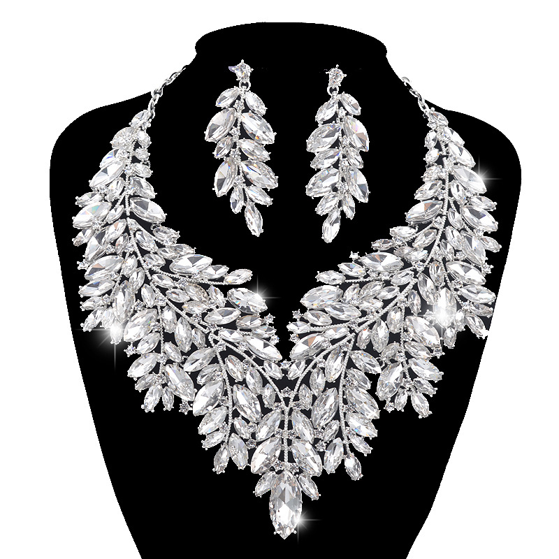European and American Brides' Exaggerated Sets of Chains, Glass Rhinestones, High-End Accessories, Necklaces, Earrings, Clavicle Chains, Party Accessories