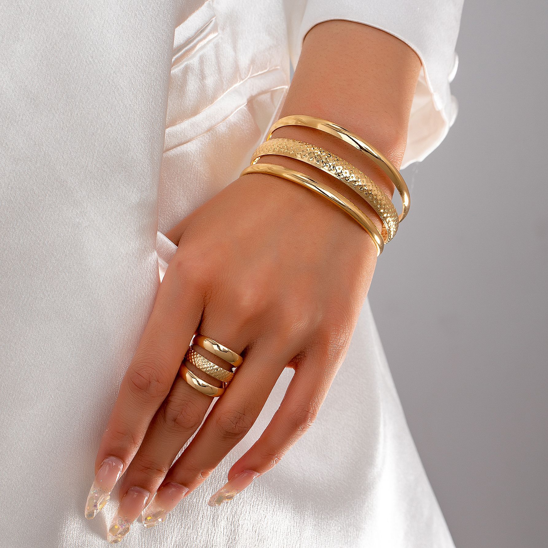 Cross border hot selling personalized fashion embossed bracelet ring suit suitable for women party wear