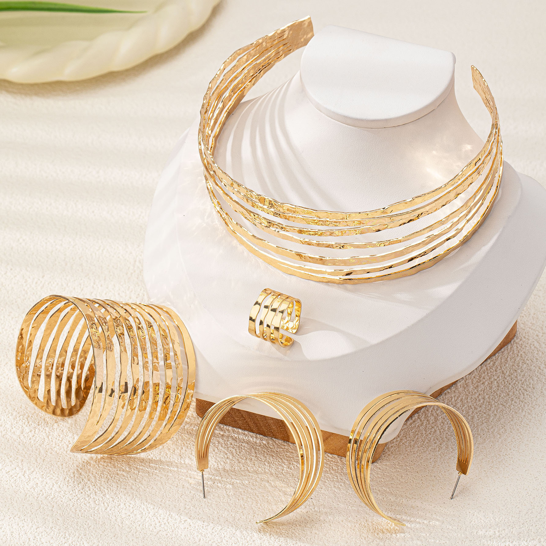 Europe and the United States cross-border new metal multi-layer geometric hollow wire drawing personality light luxury high-end gorgeous style jewelry set