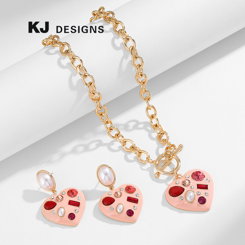 Kenjie original new Valentine's Day series Love Peach Drop oil pendant necklace female European and American cross-border fashion set