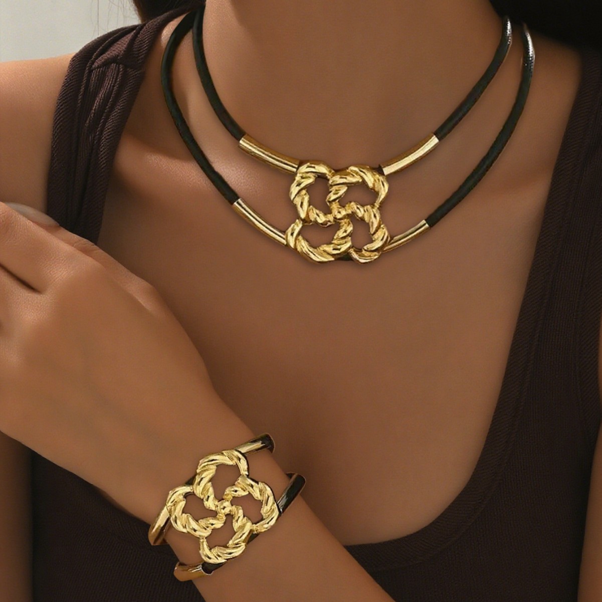 European and American New Versatile Metal Chain Decorative Twist-Shaped Pendant Necklace Bracelet Double-Layer Stacked Choker Clavicle Chain