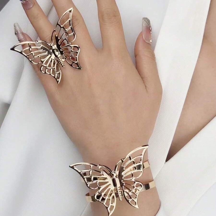 New Creative Light Luxury Hollow Jewelry Butterfly Metal Butterfly Bracelet Ring Light Luxury Hollow Creative Design Cross Border