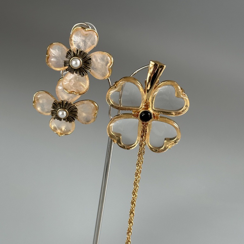 CDD Five Plum Blossom Necklace Earrings Bracelet Ring Women's Four-Piece Set Fashion Double-Sided Four-leaf Clover Cross-border Supply
