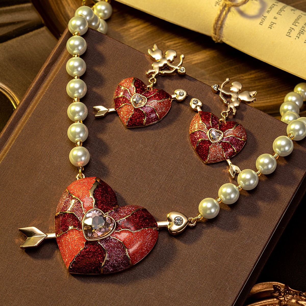 Elegant Elegant Pearl Gorgeous Arrow through the Heart Angel Cute Necklace Medieval Vintage Heart Cartoon Earrings