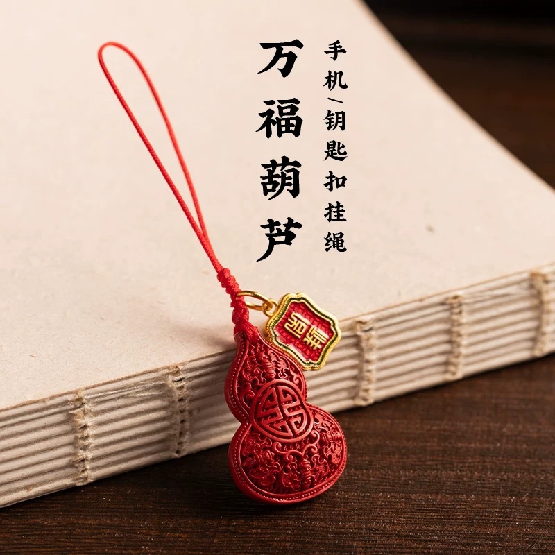 2025 New Cinnabar Gourd Benmingnian Mobile Phone Pendant for Men and Women Fulu Small Pendant Low Content Cinnabar Pendant