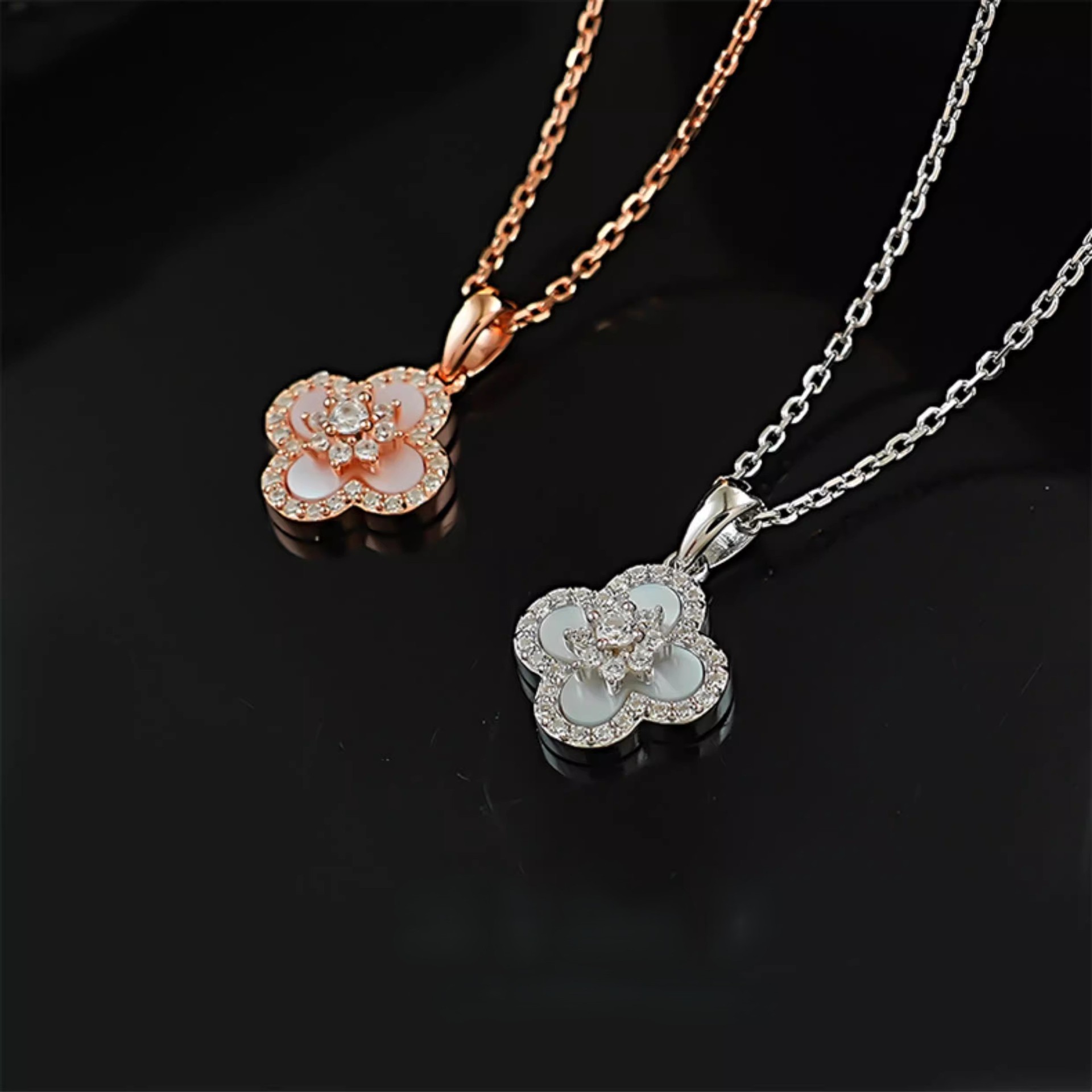 Light Luxury Four-Leaf Clover Imitation Mother-Of-Pearl Alloy Pendant Necklace Copper Inlaid with Zircon Versatile Niche Design Elegant Sweet Girl