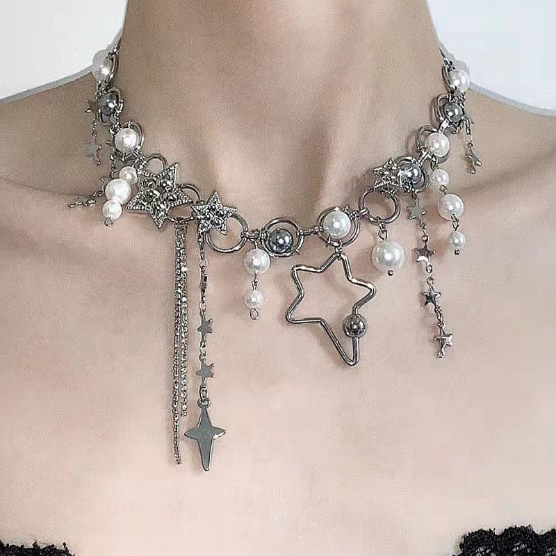 Sweet Cool Light Luxury Exquisite Button Star Pearl Tassel Necklace Waist Chain Women's Fashionable Distinctive Two-Wearing Collarbone Chain Accessories