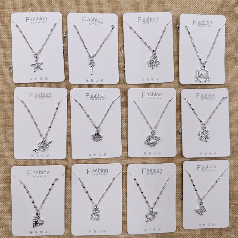 New women's diamond-embedded small pendant clavicle chain necklace student jewelry live broadcast small gift 2 yuan store supply