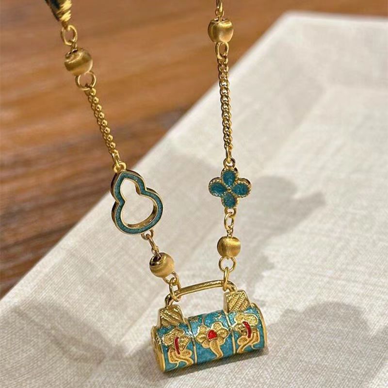 Vietnamese Sand Gold Filigree Retro Cut Out Lucky Bag Chain Pendant Necklace Gold-Plated Money Bag Accessories Accessible Luxury and High-End Sense