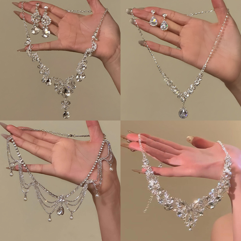 Heavy-Duty Luxury Zircon Water Drop Tassel Necklace, High-End Light Luxury Clavicle Chain, Neck Chain, Banquet Accessory