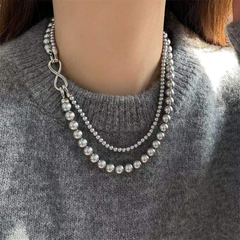 Original Niche Design Pearl Water Drop Necklace Women's Cold Style Double Layer Stacked Crystal Bead Clavicle Chain