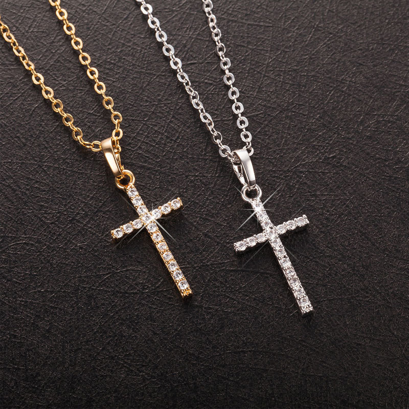 Cross-border hot-selling hip-hop diamond-encrusted cross pendant necklace men and women all-match retro neck chain clavicle chain jewelry wholesale