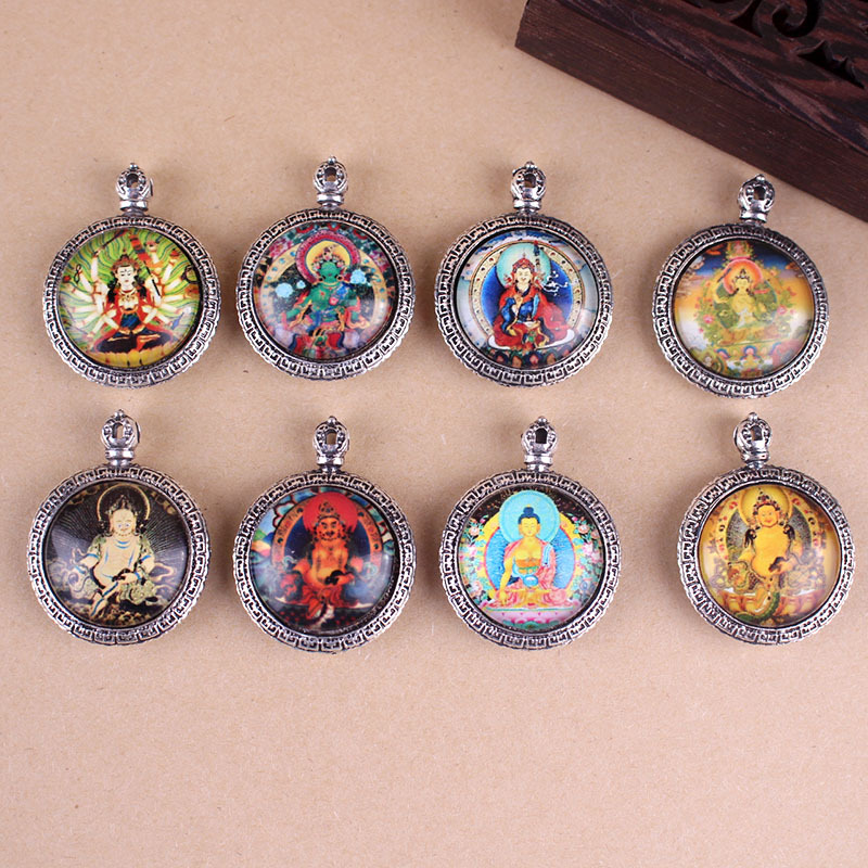 Handmade DIY Manshu Bodhisattva Buddha alloy pendant accessories round Nepal retro Buddha alloy accessories