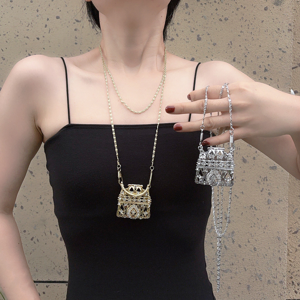 European and American Retro Light Luxury Metal Hollow Diamond Mini Bag Necklace Fashion Temperament Cross-Body Chain Wholesale