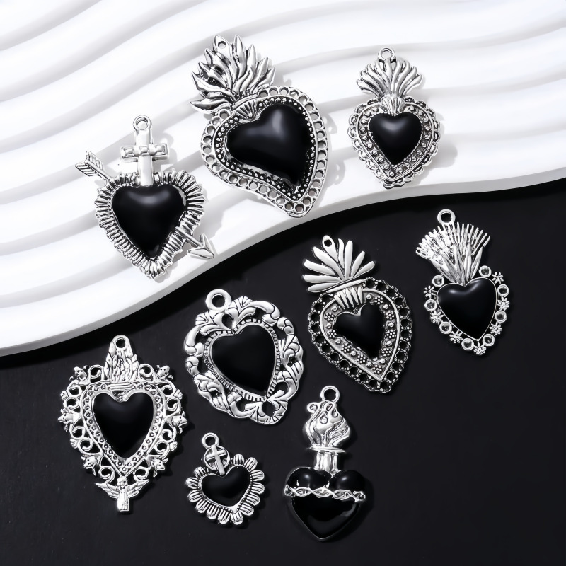 9 Styles of Cross-Border Enamel Dark Gothic Black Sacred Heart Alloy Pendants for DIY Jewelry Crafts Necklace Making