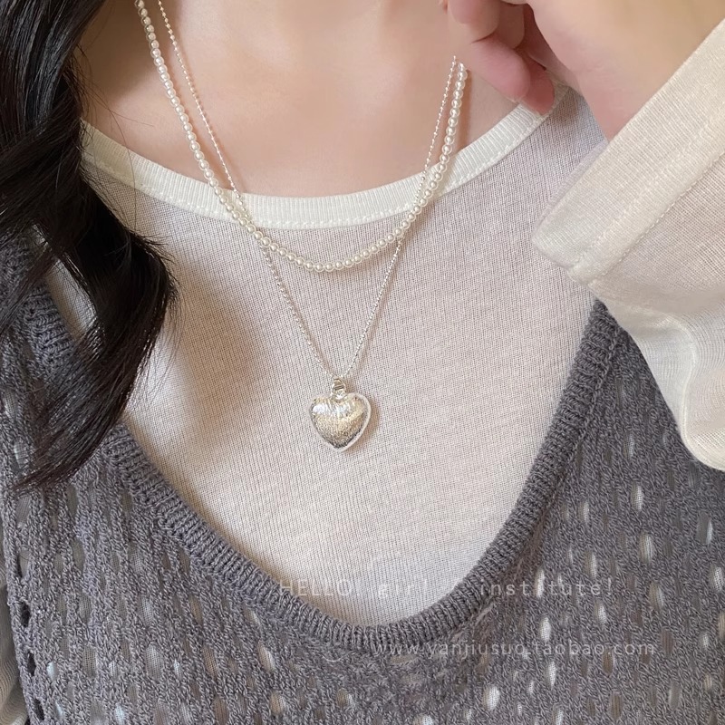 Blogger Same Style Korean Style Ins Style Silver brushed Love Necklace Women's Summer High-end Style Overlapping Woolen Chain Accessories