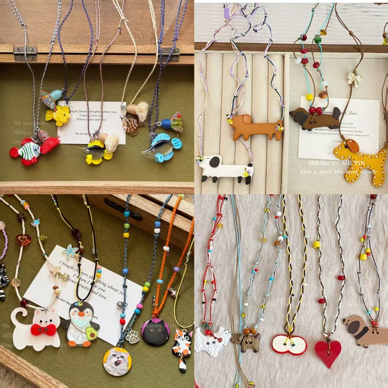 "Animal Party" New Childlike Small Animal Pendant Braided Necklace Clavicle Chain Long Girly Heart Clavicle Chain