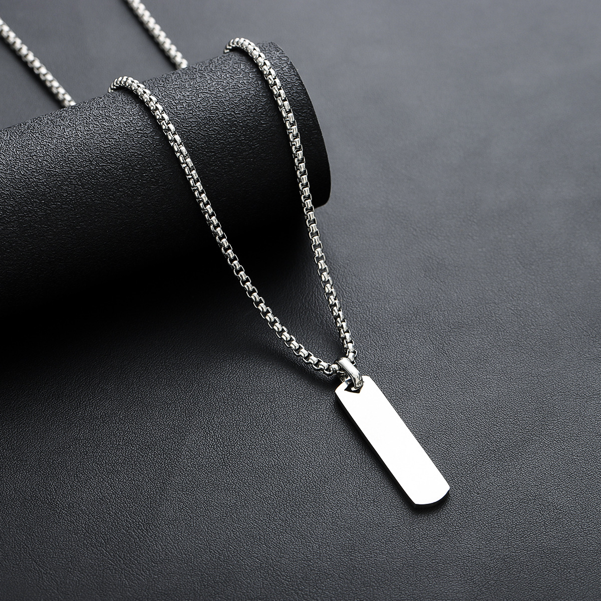 Square geometric necklace men's titanium steel non-fading high-end retro versatile personality accessories female niche simple jewelry