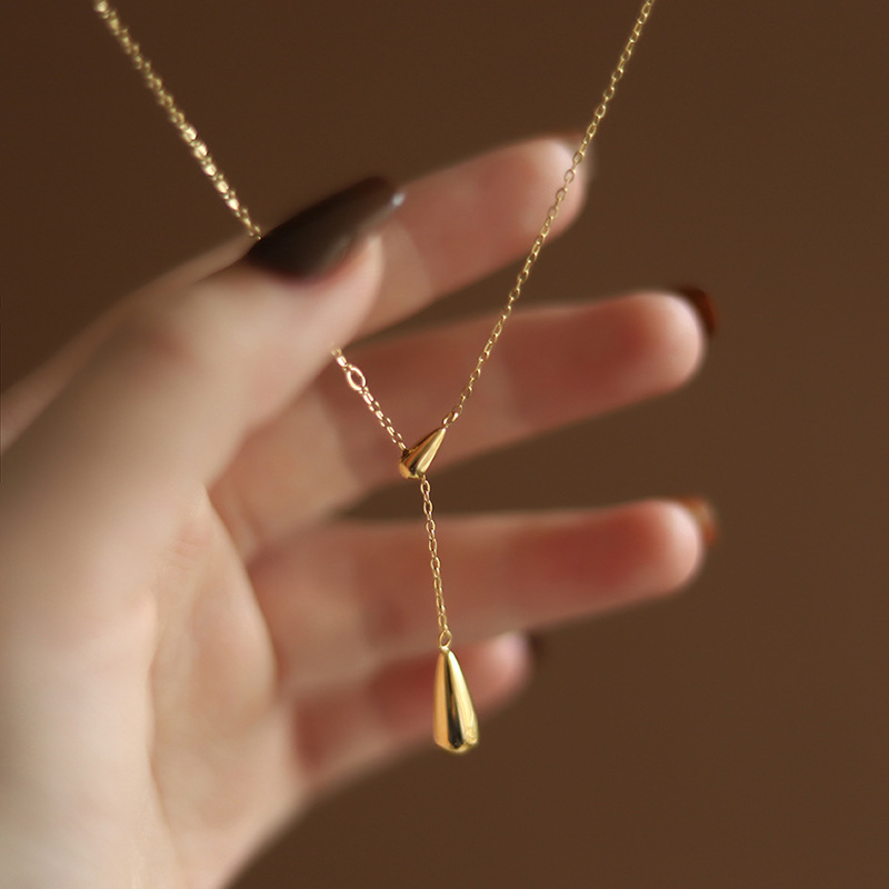 Gold-Plated Design Water Drop Style Necklace for Women, Light Luxury Fashion Simple Clavicle Chain Choker Minimalist Style Water Drop