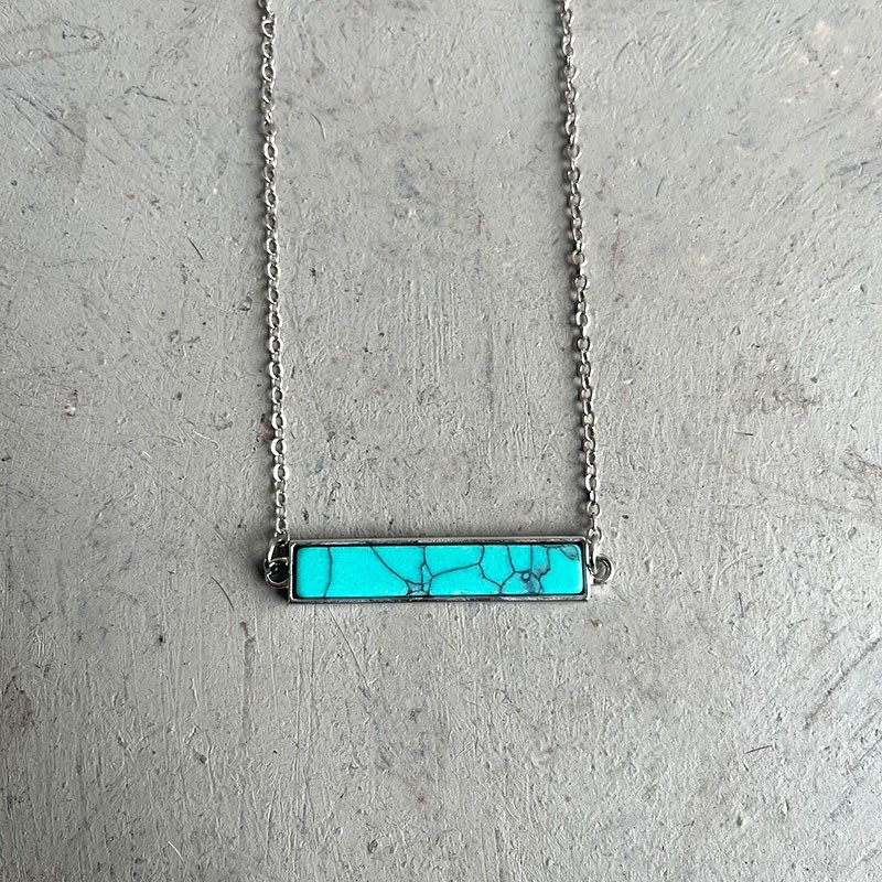 Cross-border Hot Sale European and American Style Simple Jewelry Turquoise Jewelry Fashion Geometric Long Strip Western Denim Vintage Necklace