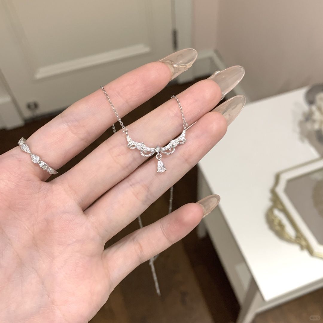 New Lace Water Drop Zircon Necklace Women's Light Luxury Niche Titanium Steel Color-free New French Style High-end Design Sense Necklace