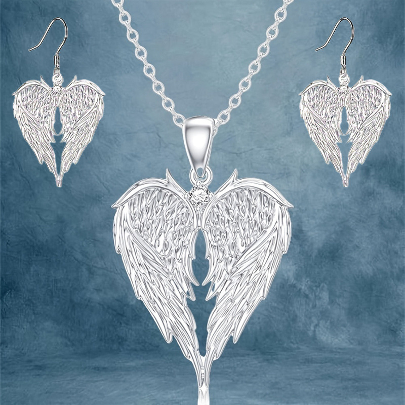 temu Amazon cross-border angel wings heart-shaped wings pendant necklace earrings suit in stock manufacturers wholesale