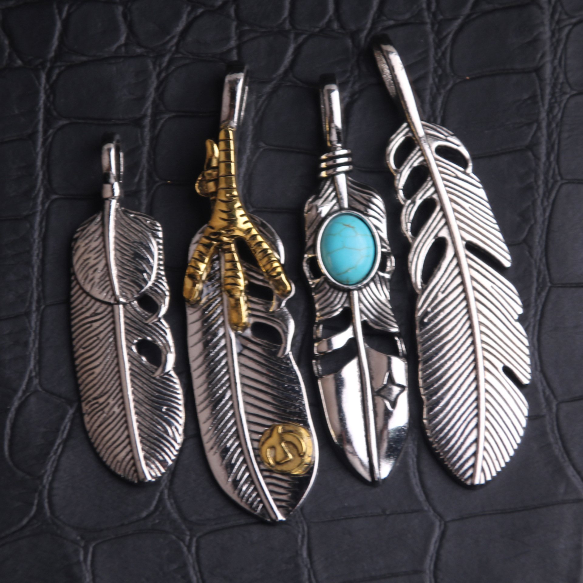 Cross-border Necklace Jewelry Four-piece Eagle Claw Feather Turquoise Hip-hop Pendant Long Necklace Takahashi Goro Necklace