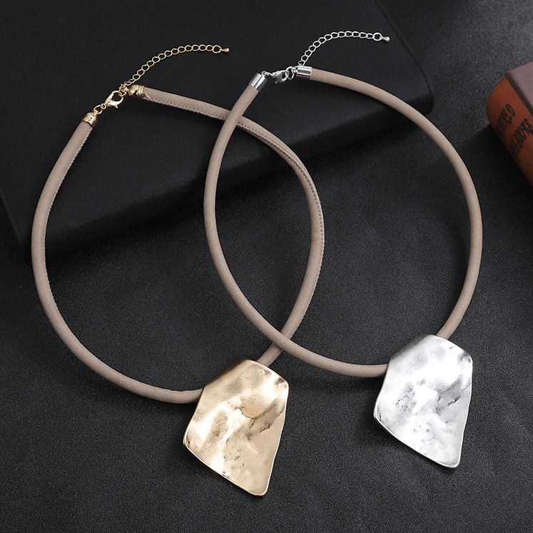 Cross-Border Hot Selling Asymmetrical Square Geometric Alloy Pendant European and American Exaggerated Women's High-End Thick Leather Rope Necklace