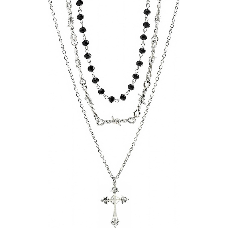 Cross-Border Men's and Women's Clavicle Chain Hip-Hop Personalized Cross Pendant Sweater Chain Alloy Necklace Gothic Style Clavicle Chain