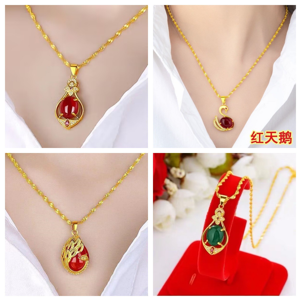 Plump jewelry brass gold-plated four-leaf clover ruby pendant necklace net red live diy jewelry wholesale