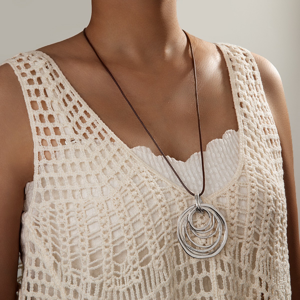 Cross-Border Retro Fashion Design Hollow Irregular Circle Large Pendant Alloy Necklace Women's Leather Cord Necklace