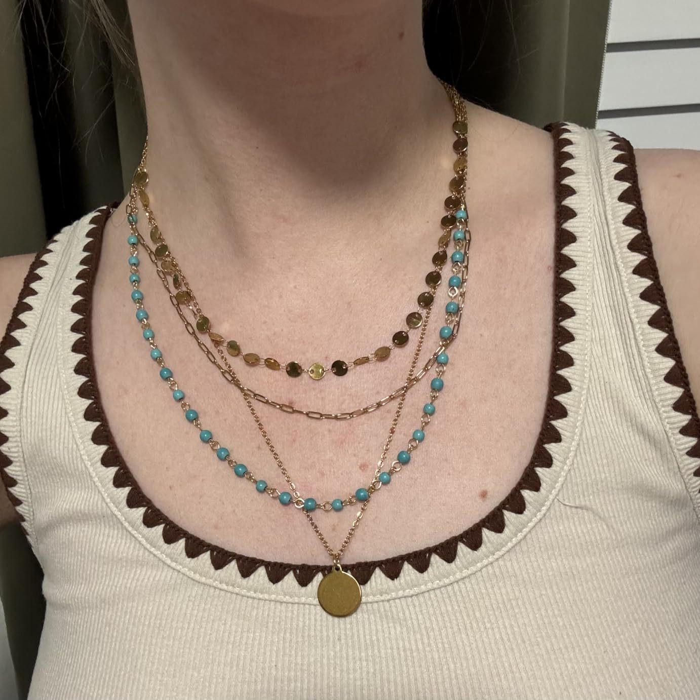 European and American Cross-border Jewelry Fashion Cold Style Geometric Round Pendant Necklace Simple Multi-layer Flat Chain Clavicle Chain