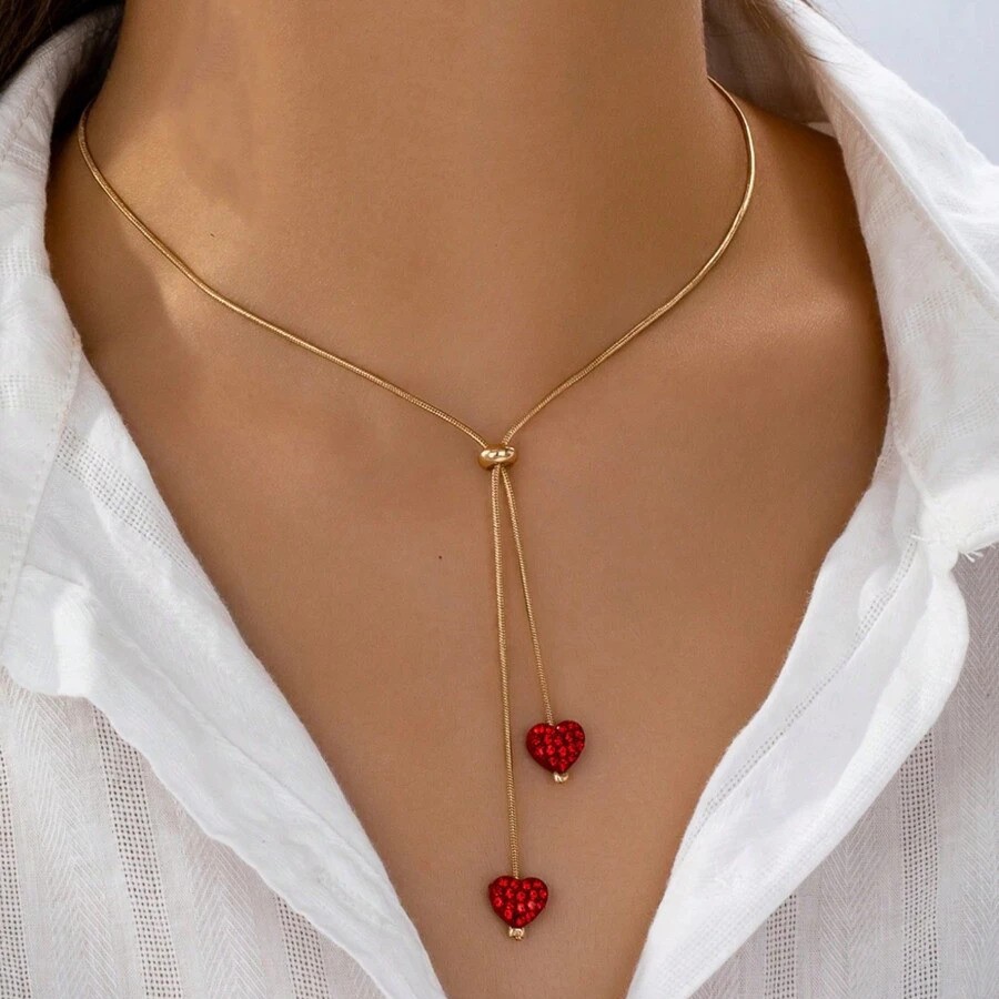 Casual Fashion Love Pendant Necklace Casual Elegant Exquisite Tassel Pendant Heart-Shaped Clavicle Chain Holiday Jewelry Women